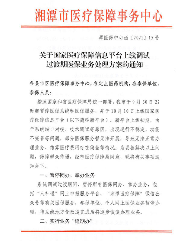 關(guān)于國(guó)家醫(yī)保平臺(tái)上線過渡期業(yè)務(wù)處理方案的通知