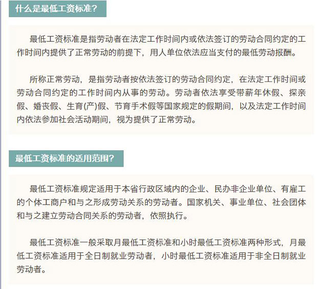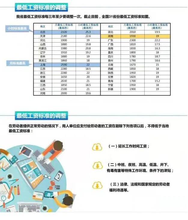 調(diào)整后我省月最低工資標準(適用于全日制勞動者)分三個檔,分別為1930元/月、1740元/月、1550元/月;小時最低工資標準(適用于非全日制勞動者)也相應(yīng)設(shè)三個檔,分別為19元、17元、15元。