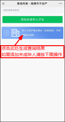 ⑸. 如需添加未成年人請點擊“添加未成年子女”后輸入身份信息并點擊確認,再點擊“本人不動產(chǎn)登記情況”